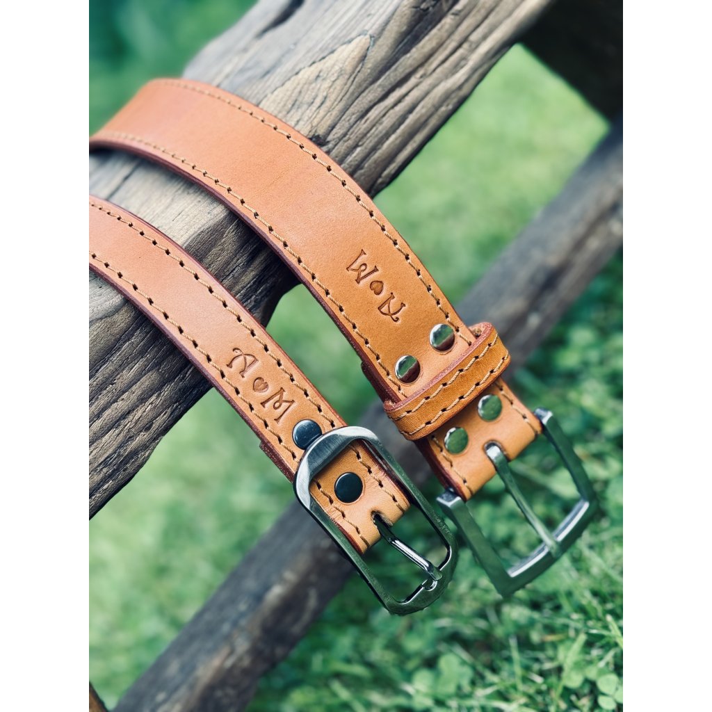 Používáme vysoce kvalitní českou a italskou hovězí useň o tloušťce 3,5 - 4 mm. Kvalitu poznáte na první pohled, ale skutečně oceníte až s věkem opasku, který při správném zacházení vydrží desítky let. Naši věrní zákazníci to už vědí. Unikátní barevné odstíny vznikají dle našich vlastních receptur, a jsme schopni namíchat odstíny dle Vašich konkrétních přání.