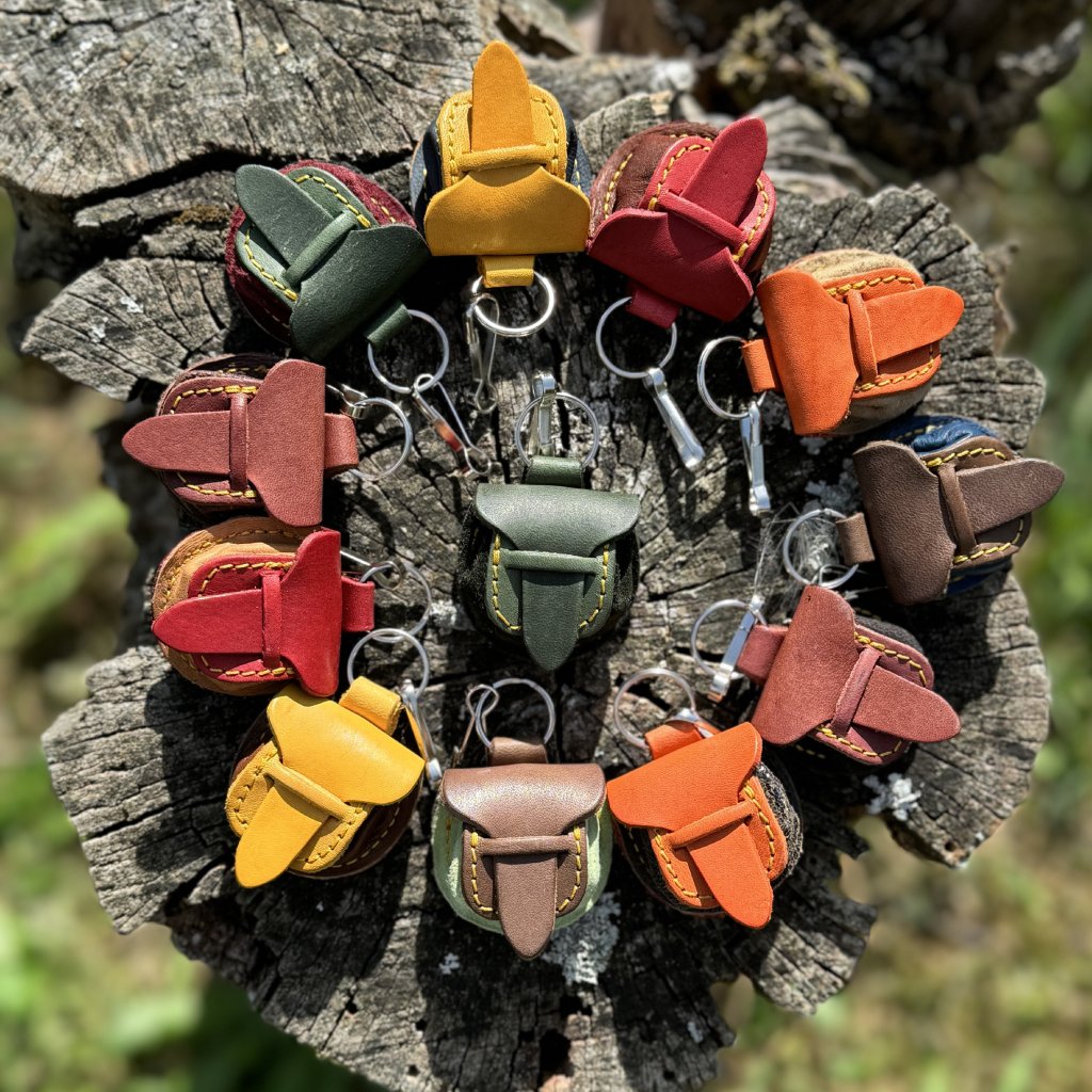 Kožená mošnička na klíče či s koženou šňůrkou k zavěšení na krk.